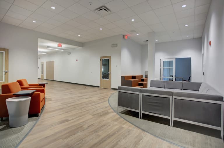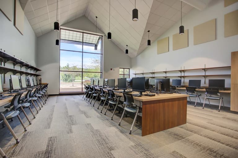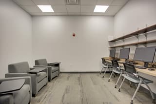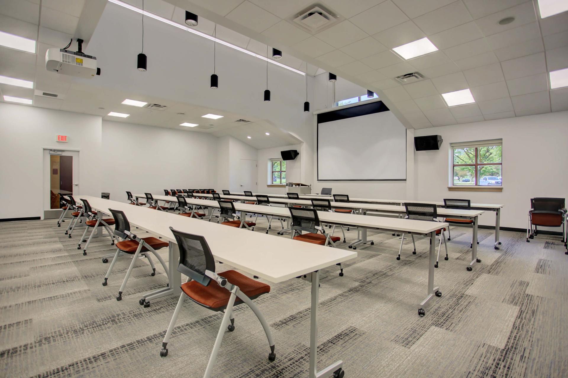 A spacious thirty-student Clinical Speech Lab, Lab Workroom, two group Study Rooms and a Lounge area provide ample resource areas and include windows to keep students connected to the natural world.