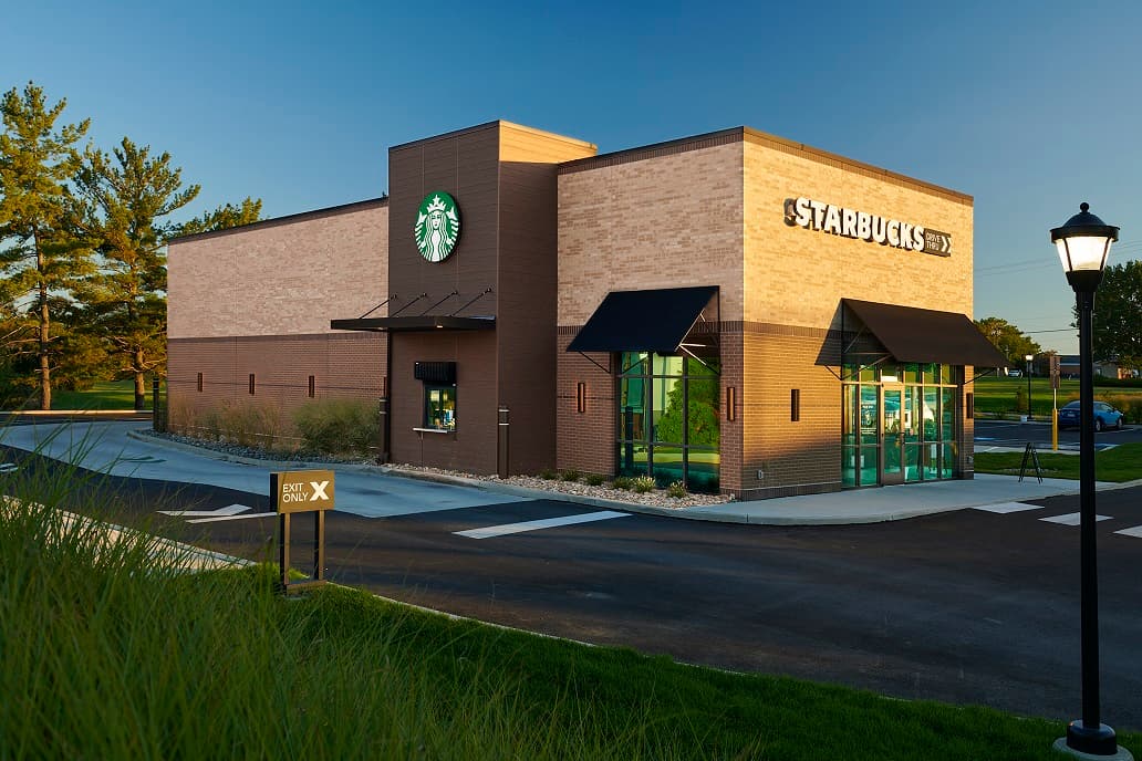 Starbucks was requested by the Greenfield employees and tenants as a replacement for an existing two-story brick office building following a survey that revealed a strong need for a coffee shop in the area. Since the site was underutilized and in a prime location it was determined to be the perfect location for the new Starbucks.