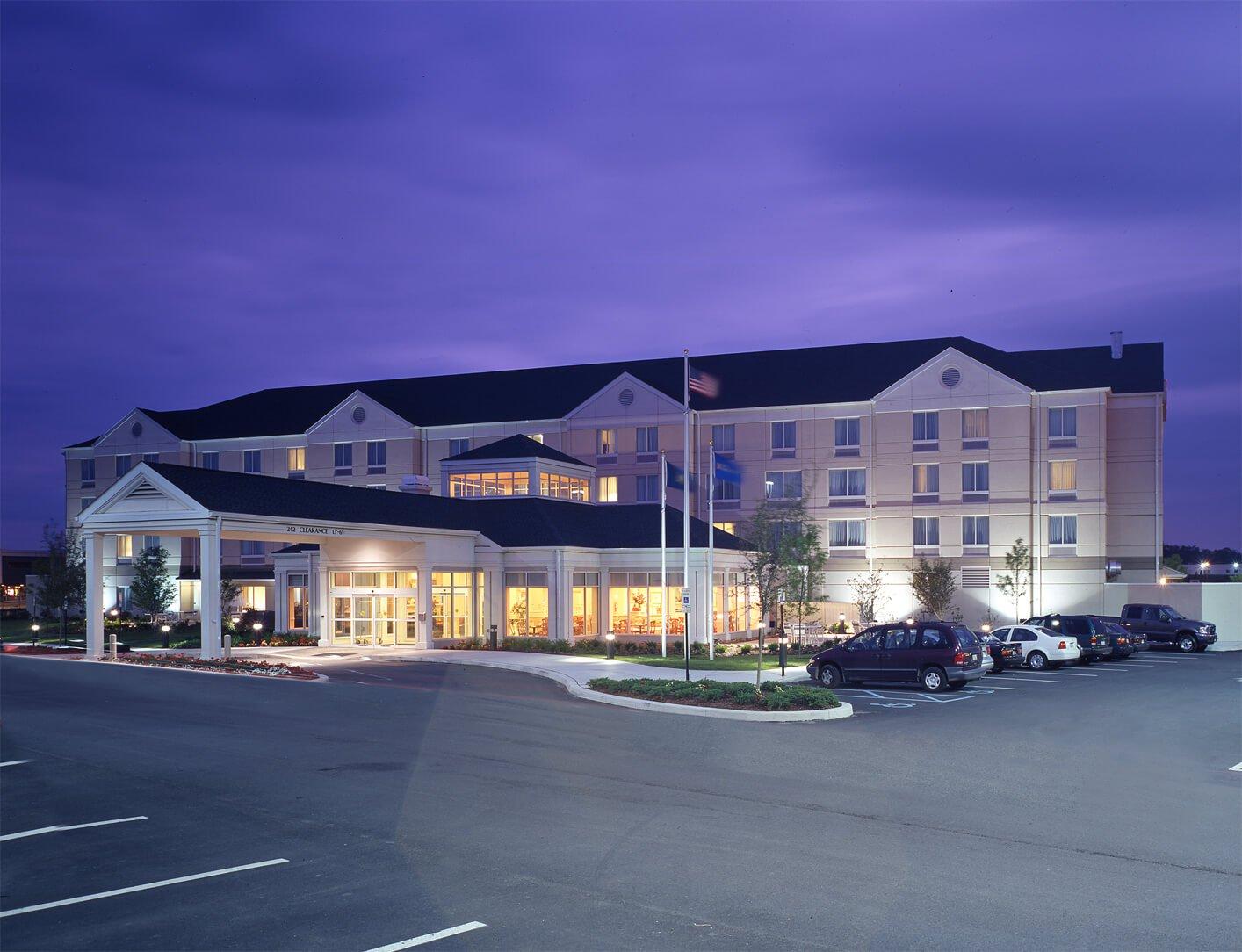 This four-story, 123-room Hilton Garden Inn is located in Wilkes-Barre, Pennsylvania on Highland Park Boulevard. Aside from the three outdoor terraces, there are an indoor pool and spa, a fitness center, a convenience store, and a large meeting room that can be divided into two smaller meetings rooms, a business center and a buffet area with dining areas, as well as a Lobby Pavilion, which is separate from the Hotel tower and has a fireplace and clerestory windows. In order to achieve a southern exposure, the hotel is oriented such that natural sunlight is let into the public areas.