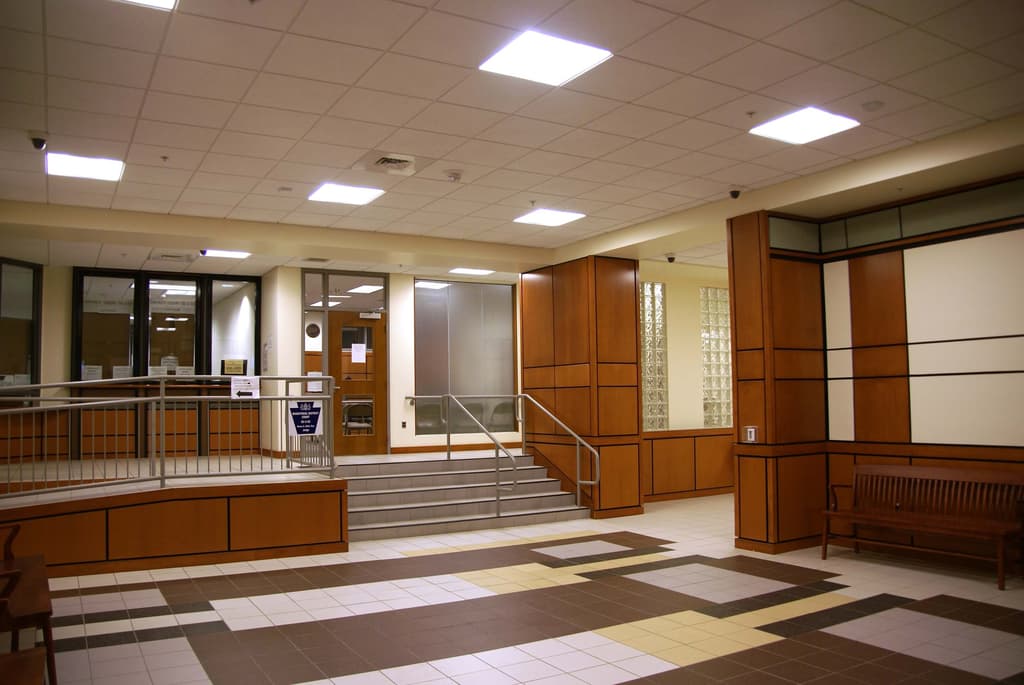 - Phase 4 –DOJ (Department of Justice) mandated A.D.A (Accessibility) Renovations which included installation of a new building-wide fire alarm system, construction of a new First Floor Fire Command Center and renovation of interior 4th floor courtroom access ramps and toilet rooms.