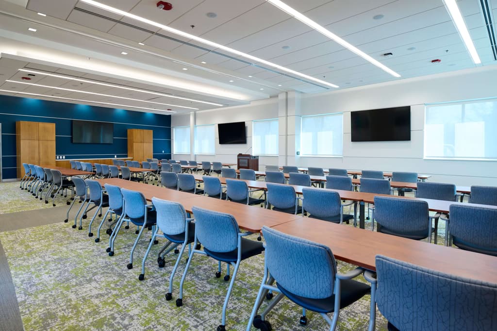 The Third Floor includes 8,788 SF with the center open Atrium area with vertical circulation and Public Restrooms, eight private Offices for Student Financial Services, six private Offices for Financial Aid and Processing, one Work Study area, one open work Collaboration area, Large Meeting Room with enhanced acoustical treatments capable of being separated into two smaller Meeting Rooms, large Conference Room, two Mechanical Rooms, and support facilities.