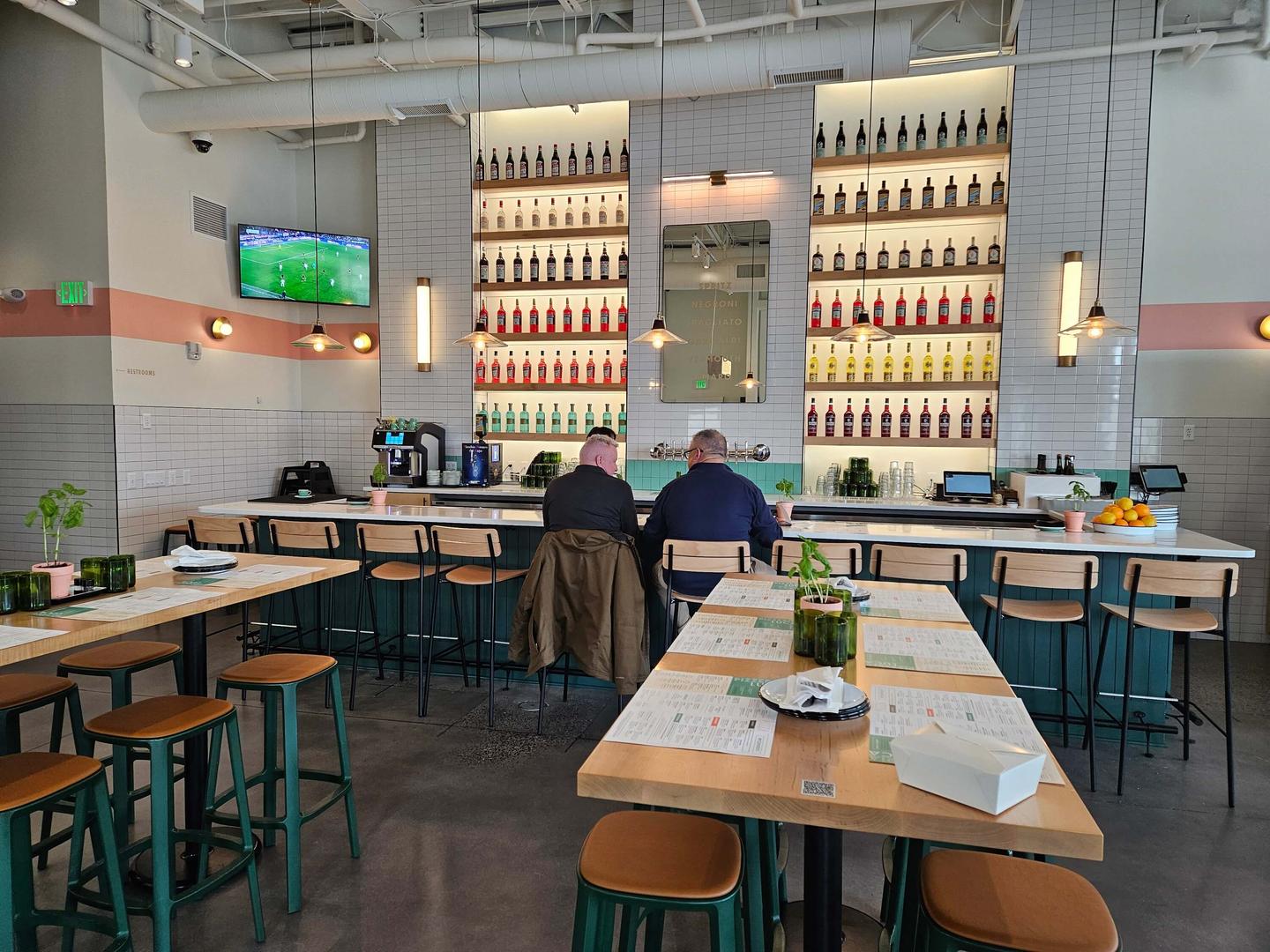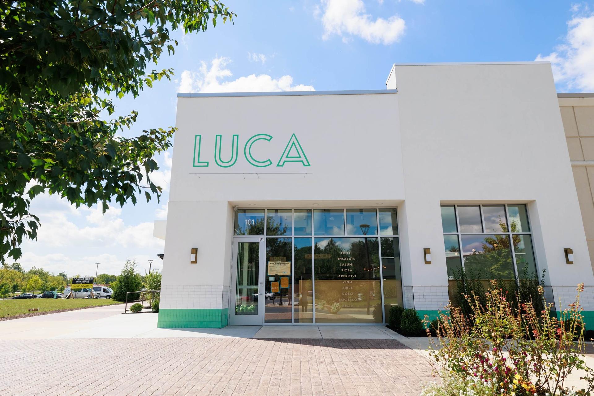 The indoor dining area included enlarged storefront windows for maximum natural daylighting filtered throughout the entire dining area. The Luca restaurant faces another stand alone restaurant providing dual outdoor dining options. The design provides sit down dining options within the open dining area or the bar area as well direct take out options. The project included collaboration with Next Step Design Food Service Consultants for a custom food service equipment design.